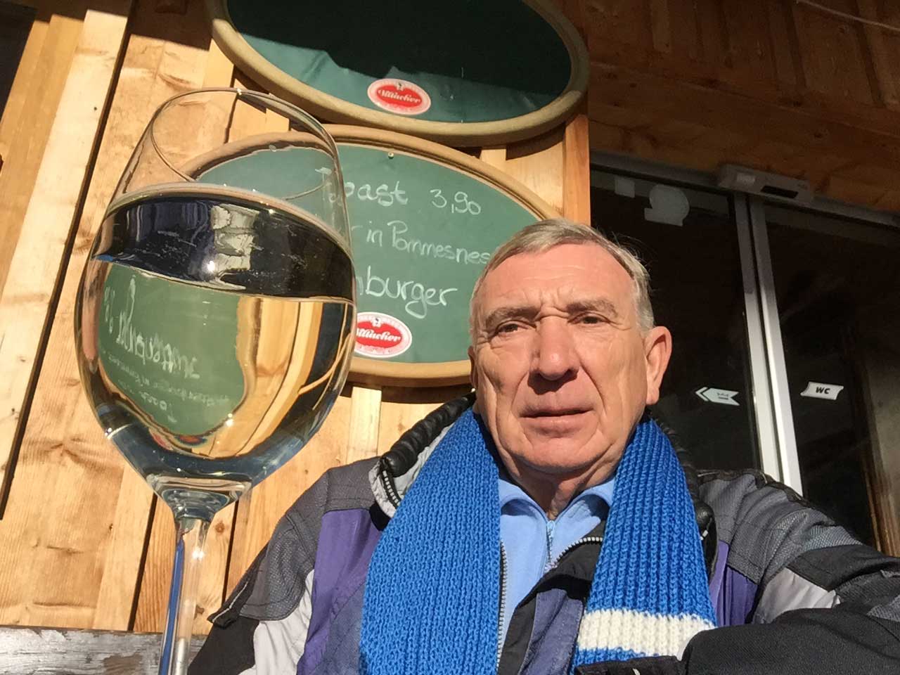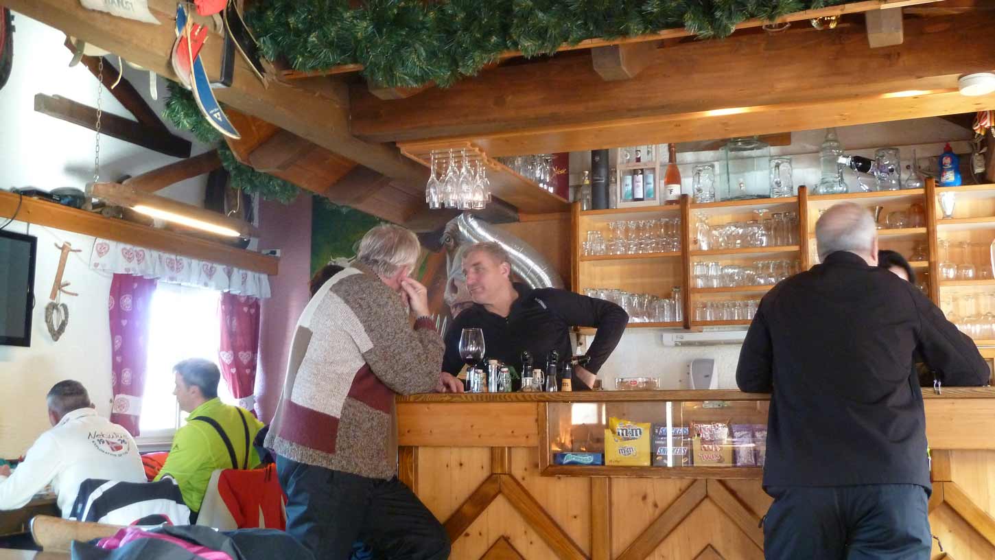 hinein gegangen. Mit dem Chef Hans am Tisch, und die Flasche Wein auch, war das schifahren aus. Außer um 15.30 Uhr den Berg hinunter, zurück zum Auto.