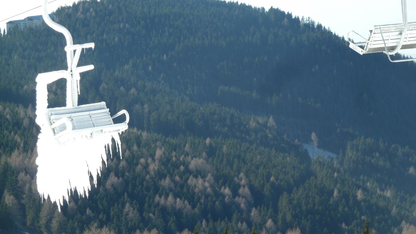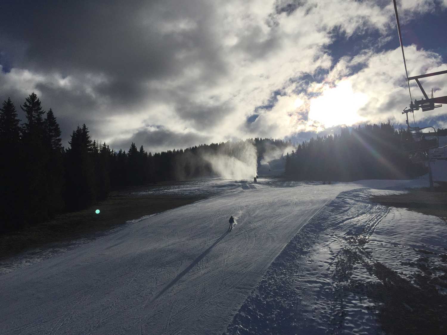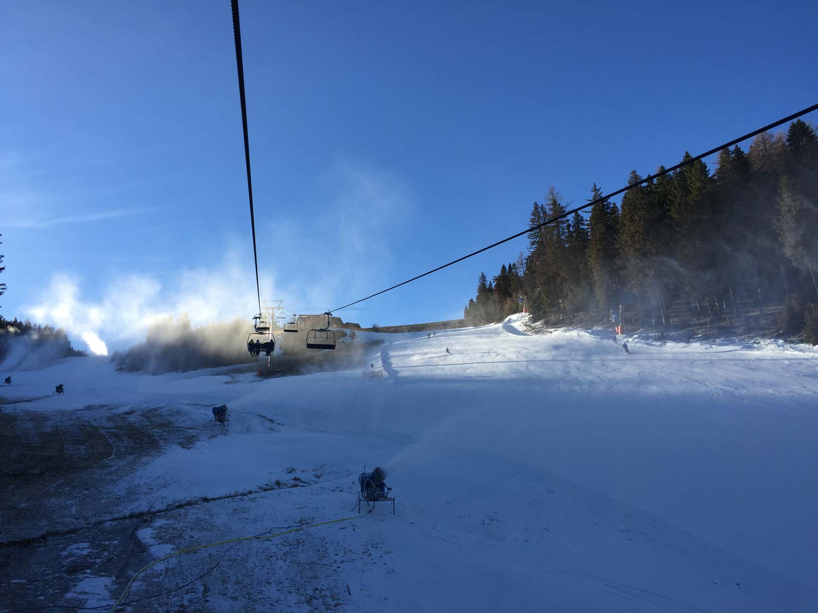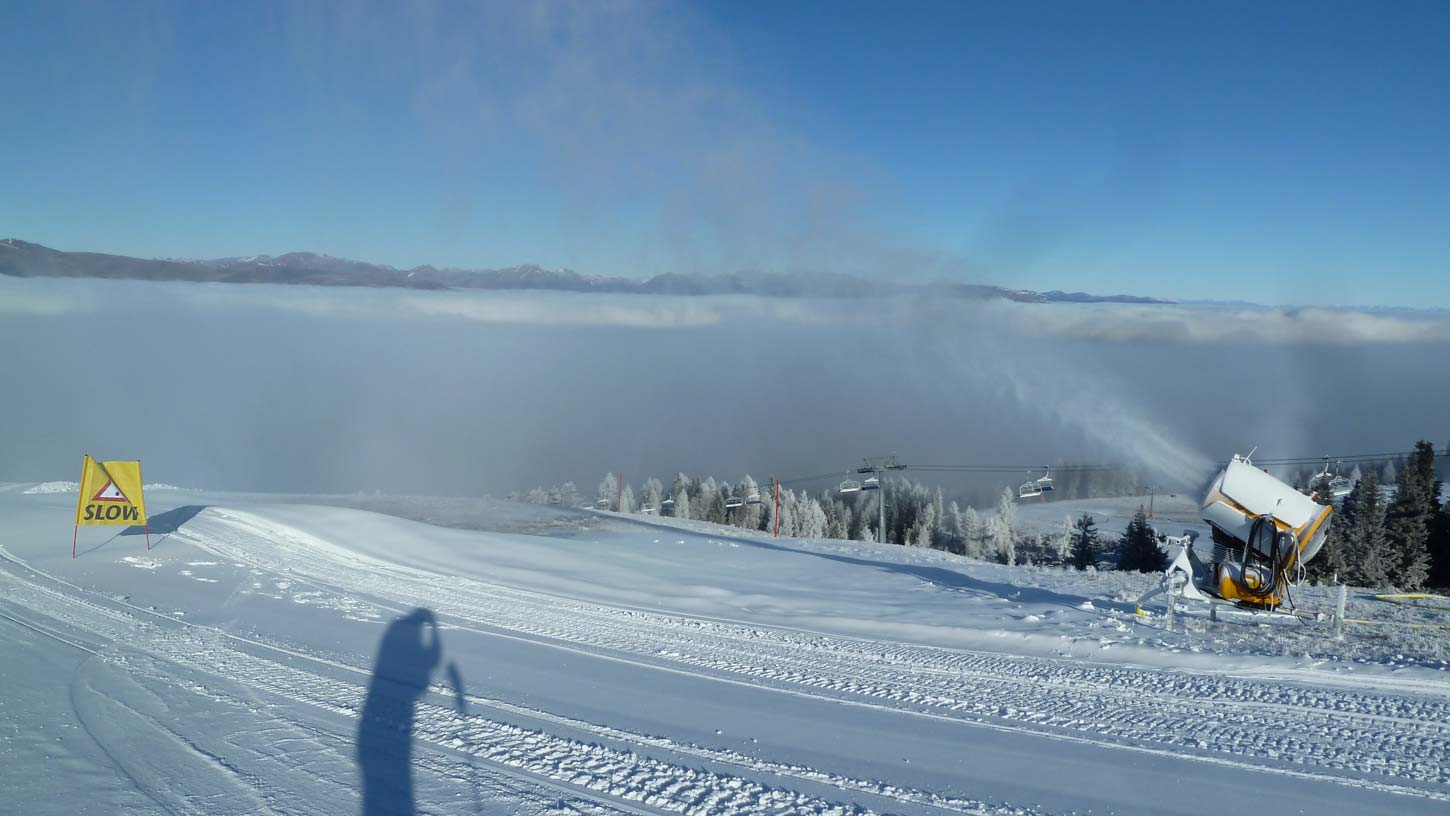 Heute Morgen über die Klösterleliften auf der Gerlitzen. Wetter wieder gut, Temp. etwas unter Gefrierpunkt, deshalb sind die Schneekanonen wieder voll im Einsatz (nov16058),