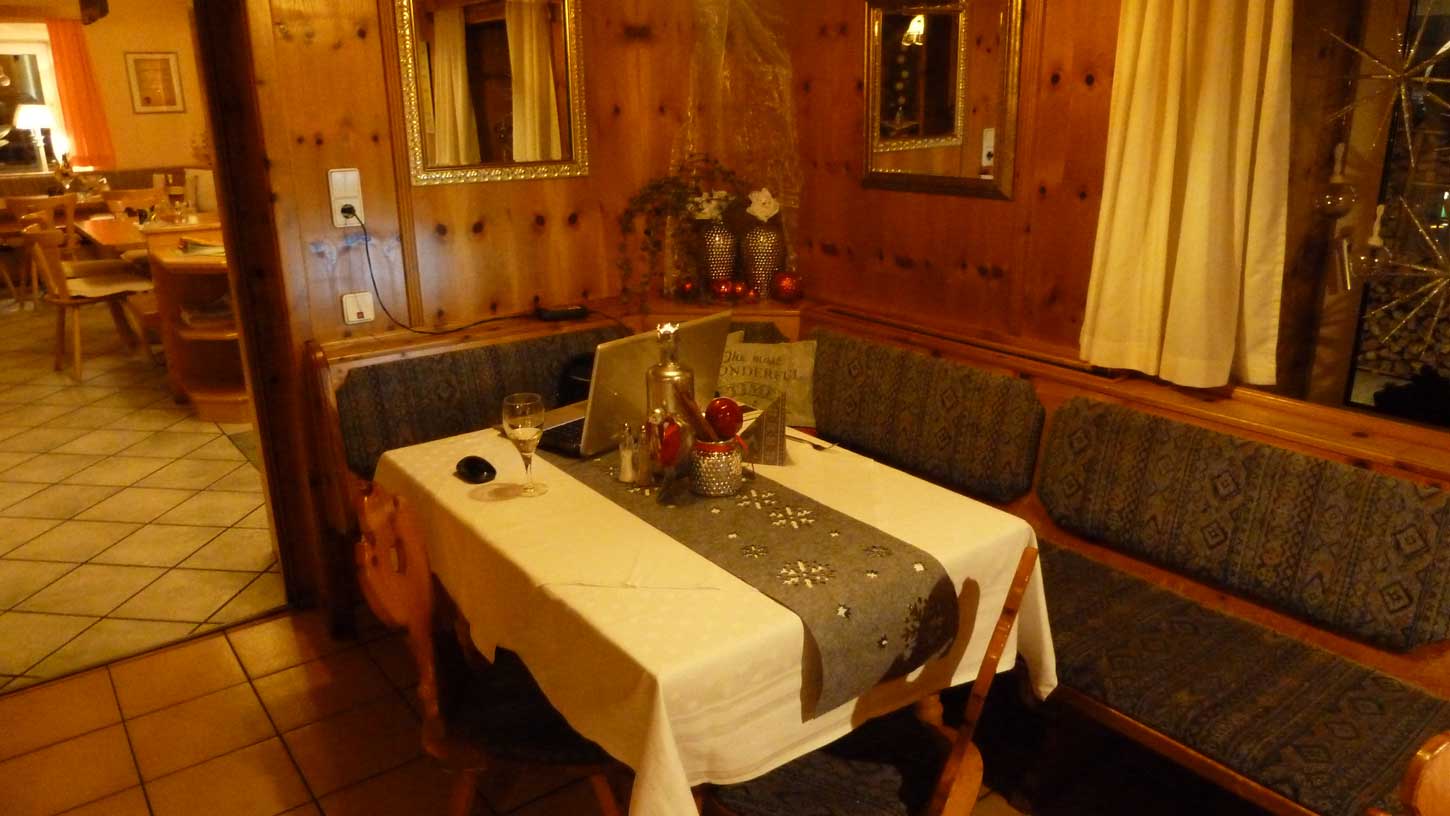 und deshalb relativ spät im Stüberl, um etwas zu trinken und zu essen. Morgen soll der Wind sich beruhigen und sind die Gerlitzen wieder geöffned.