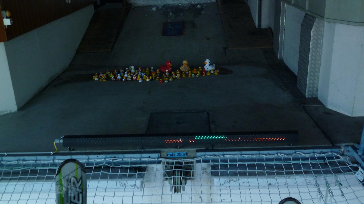 in der Mittelstation der Klösterlelift, die große Familie Ente (nov16063). Seit Jahren schön zu sehen; es hat einmal angefangen mit 2 Enten aber jedes Jahr wird die Familie