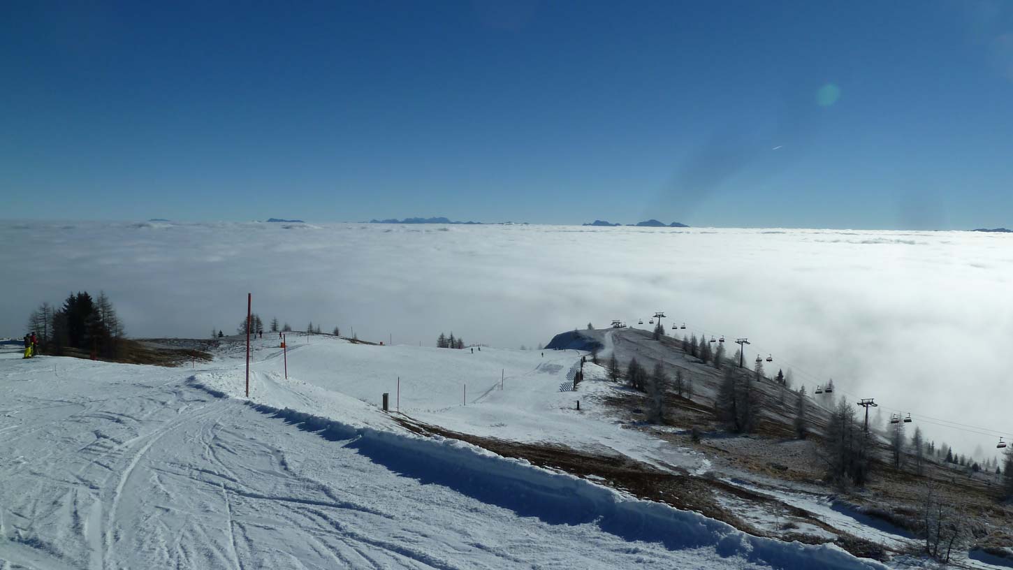 Wie die letzten Tagen auf der Gerlitzen über Klösterle. Am Morgen zuerst noch einige leichte Bewölkung, vor allem in Richtung der Wörthersee (nov16064), aber die Bewölkung